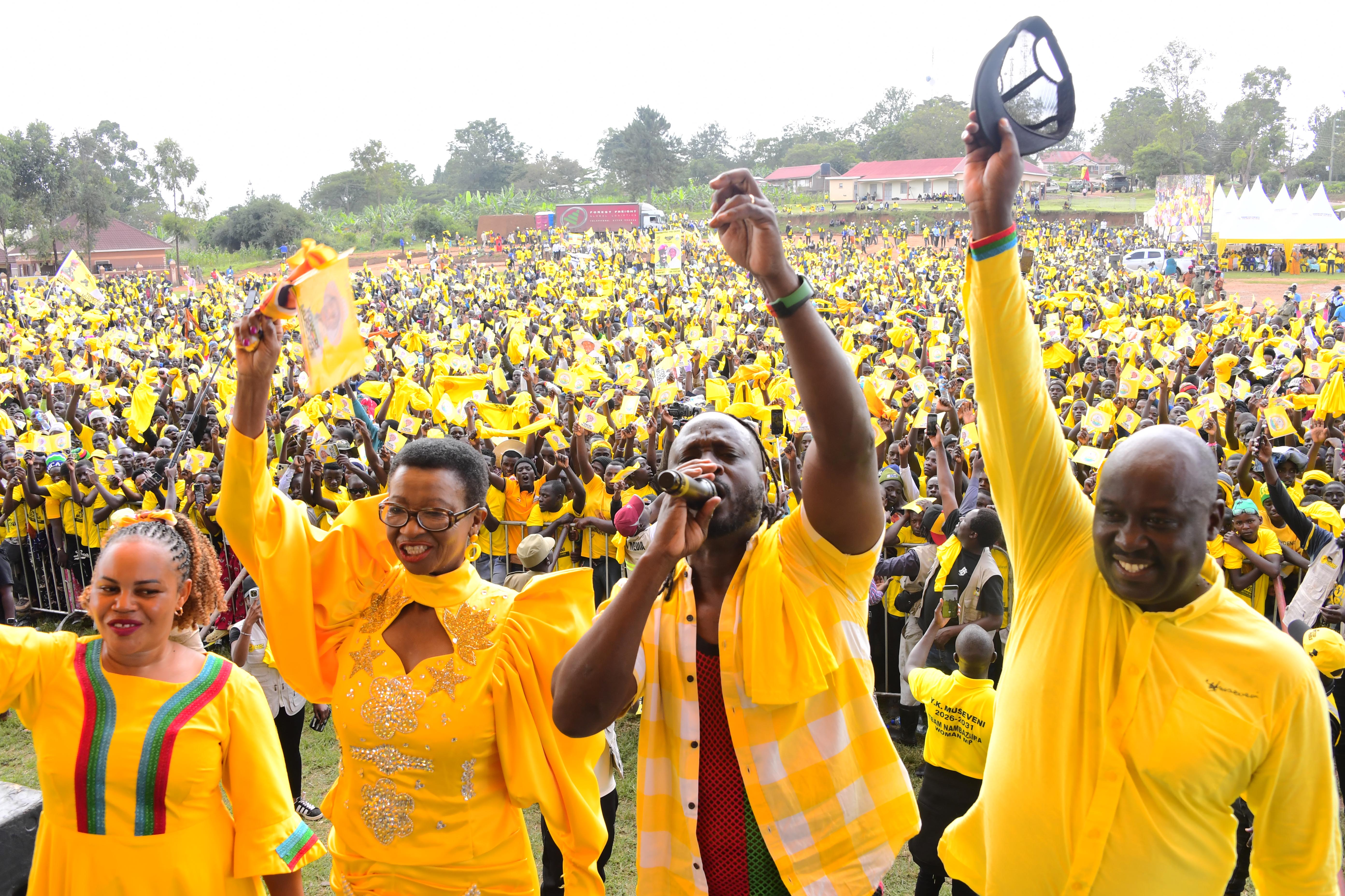 “When the rain came, you stayed,” President Museveni said, noting that the same spirit had been displayed by NRM supporters in Kassanda, Kyankwanzi, and Bukomansimbi, where crowds also endured downpours to follow his campaign message.
